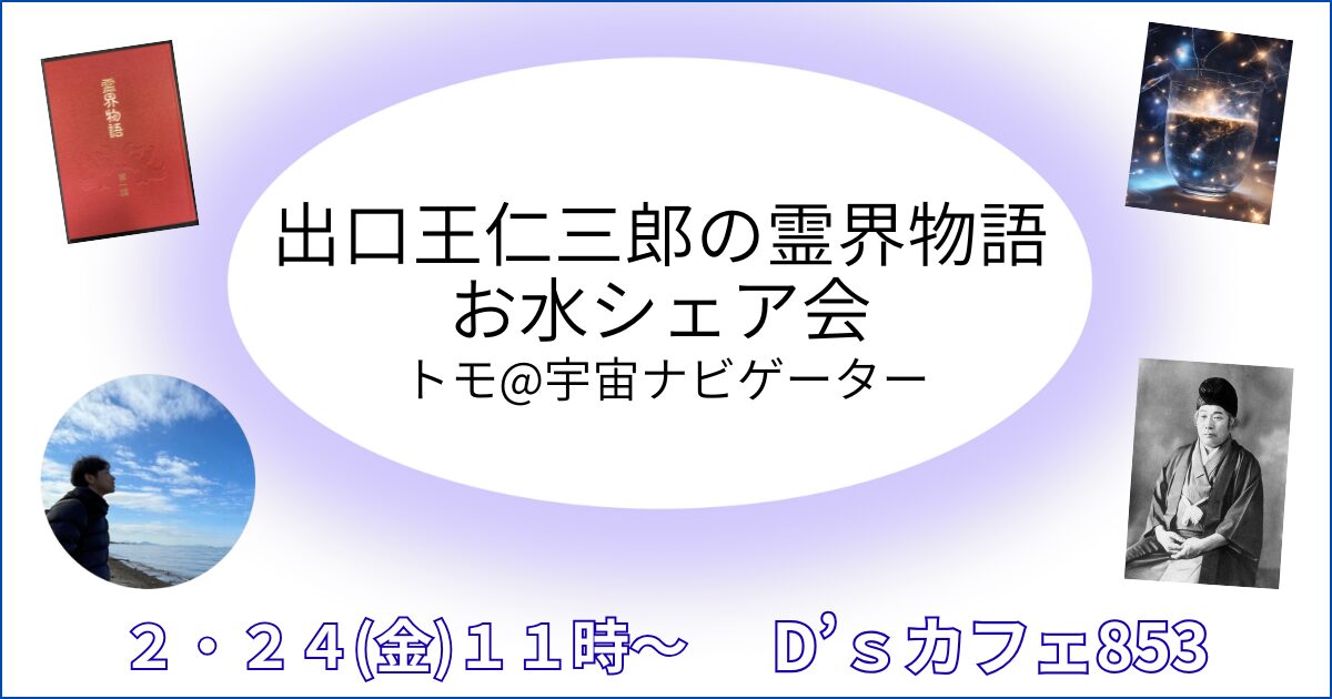 【対面お話し会2月24日】出口王仁三郎の霊界物語&お水シェア会(名古屋市八事 D'sカフェ)
